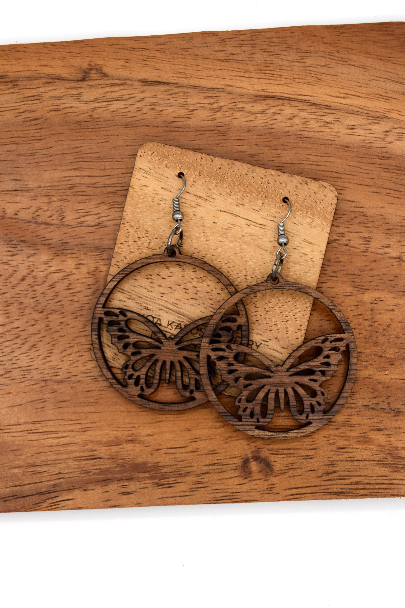Koa Wood Solid Pulelehua i Loko Kulapepeiao (Earring)